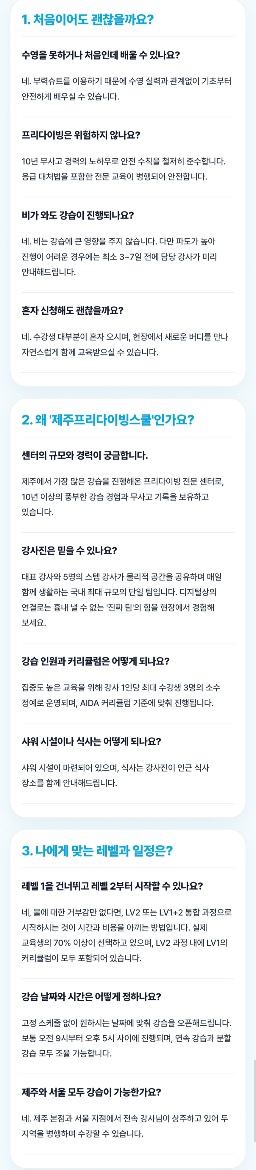 프리다이빙 강습 교육 레벨2 초급 제주 AIDA